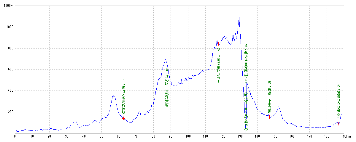 | 2:道の駅 吉野路大塔 | 11:59:31 | 87.86km | 652m | ||