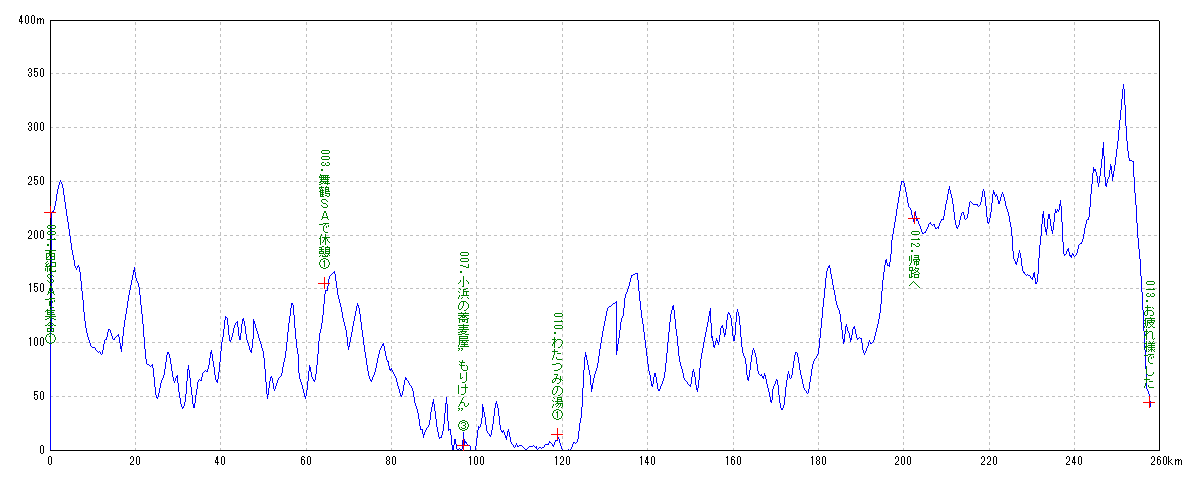 | 水平距離 | 257.94km | 沿面距離 | 258.60km |