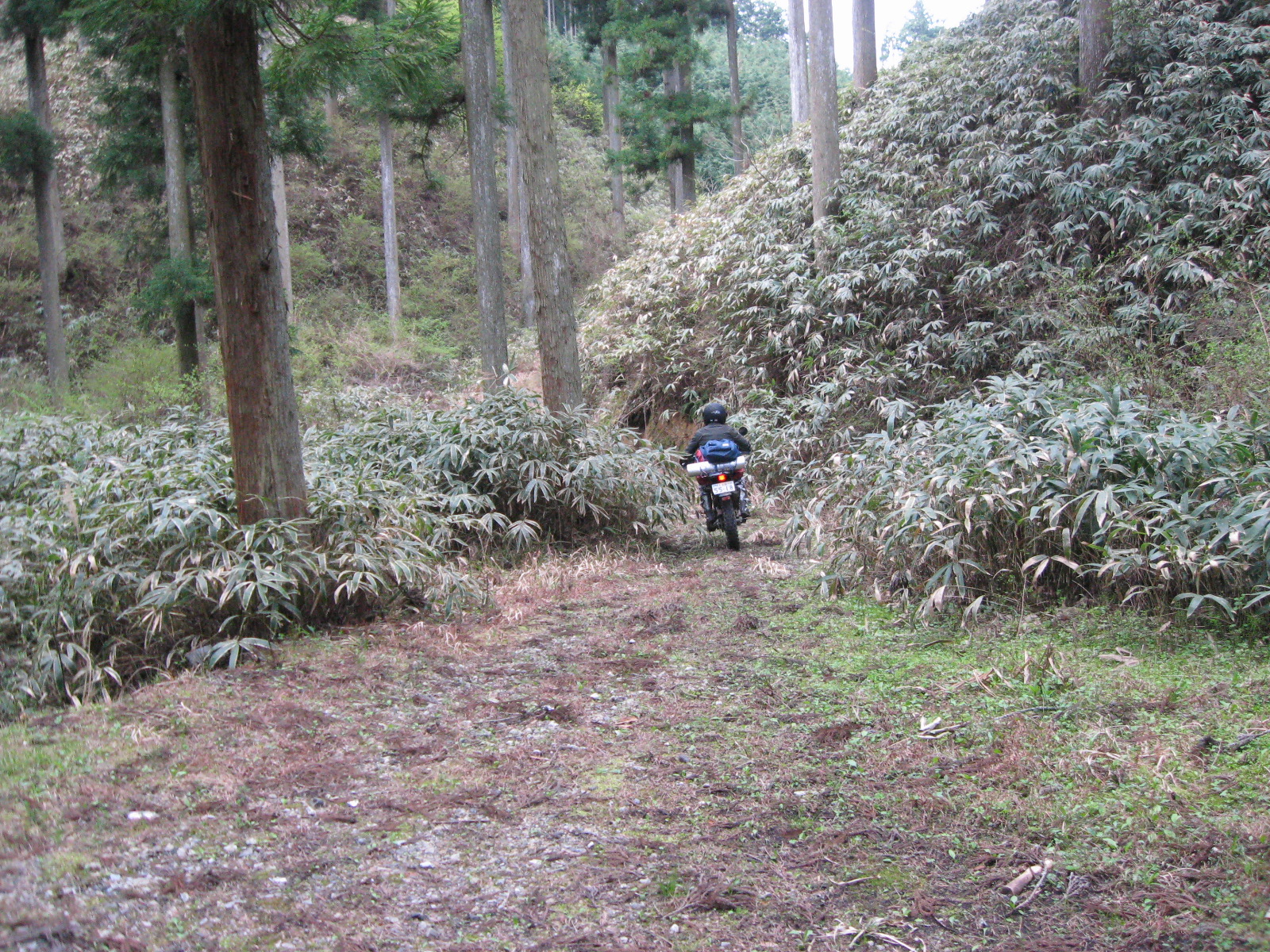 走行ルートを見てもらうとわかりますが、通行止めの箇所から先に、比較的多くの林道がありました。すべてピストン林道でしたが、ソレまでが1km程度しかない道ばかりでしたので、数kmの林道があるだけでも楽しめる気分。堪能してきました。写真はその一部の林道を走っていたときのものです。