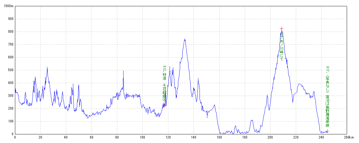 | 水平距離 | 244.73km | 沿面距離 | 251.81km |