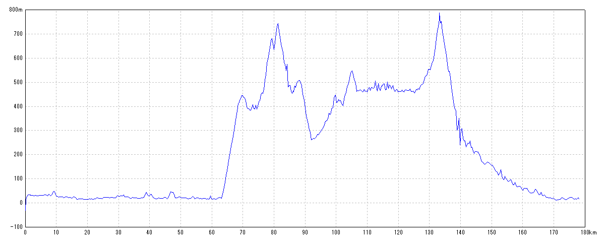 | 水平距離 | 178.20km | 沿面距離 | 179.64km |