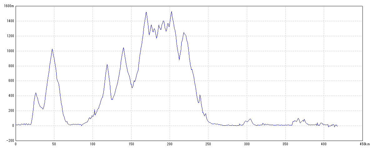 | 水平距離 | 407.50km | 沿面距離 | 411.26km |
