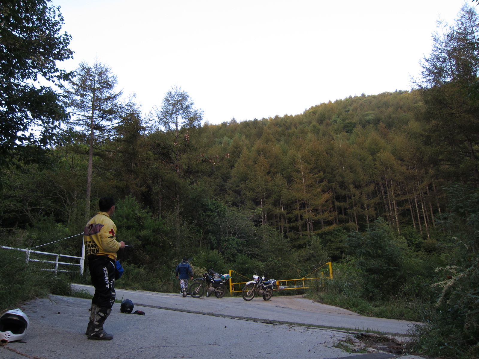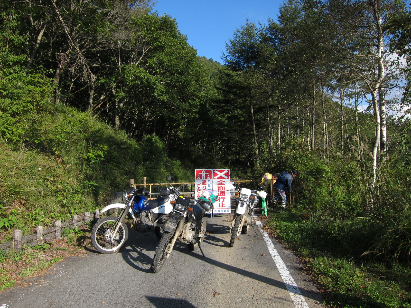 さぁ!と走り出してすぐに出てきたゲート。見ると冬季間通行止めとのこと。秋口なら行けるでしょうということで、GOGO!この先約10KM。さらに続く林道を含めると、約13KMの道のりとなるようです。