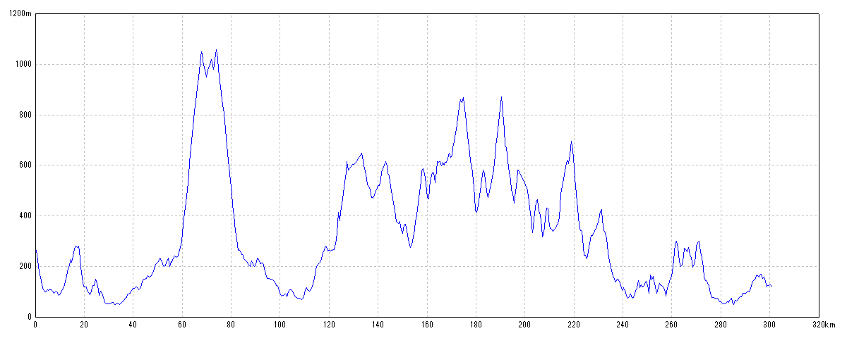 | 水平距離 | 301.00km | 沿面距離 | 304.24km |
