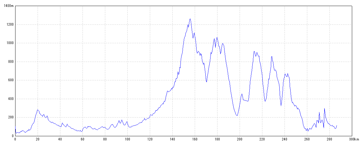 | 水平距離 | 286.53km | 沿面距離 | 290.51km |