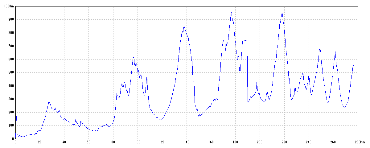 | 水平距離 | 276.66km | 沿面距離 | 281.79km |