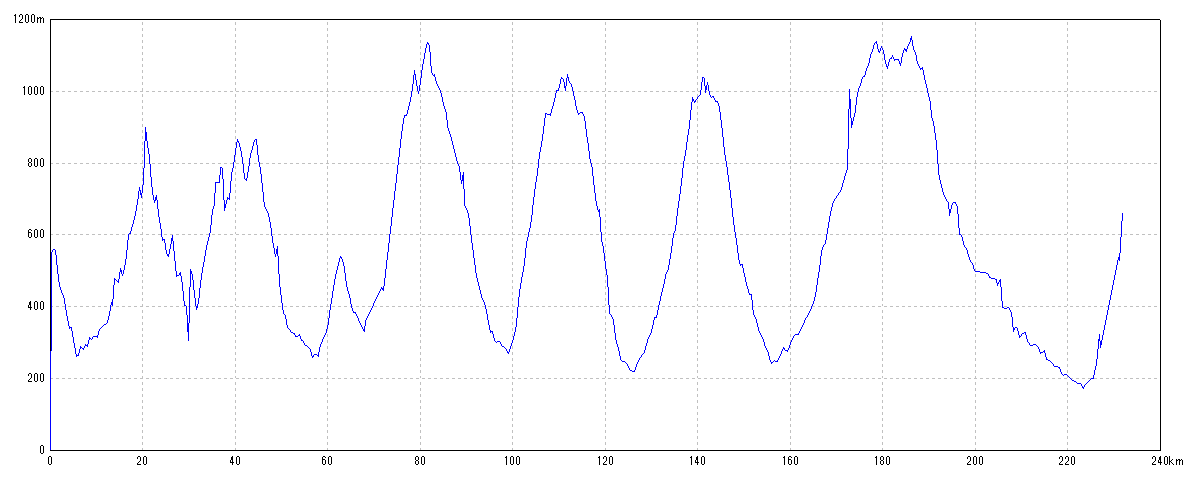 | 水平距離 | 231.94km | 沿面距離 | 240.04km |