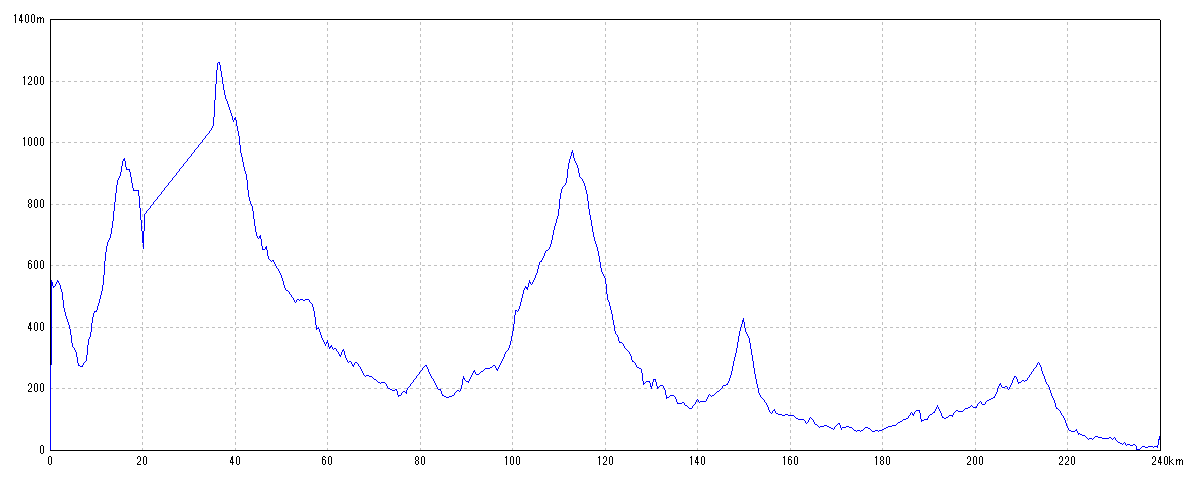 | 水平距離 | 239.95km | 沿面距離 | 243.97km |