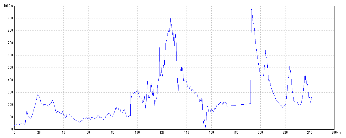 | 水平距離 | 242.14km | 沿面距離 | 247.76km |