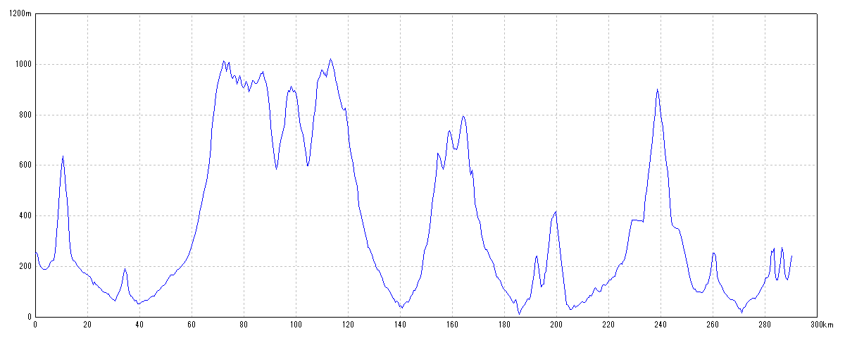 | 水平距離 | 290.27km | 沿面距離 | 293.10km |