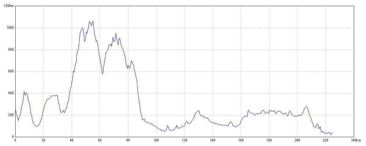 | 水平距離 | 224.75km | 沿面距離 | 225.76km |