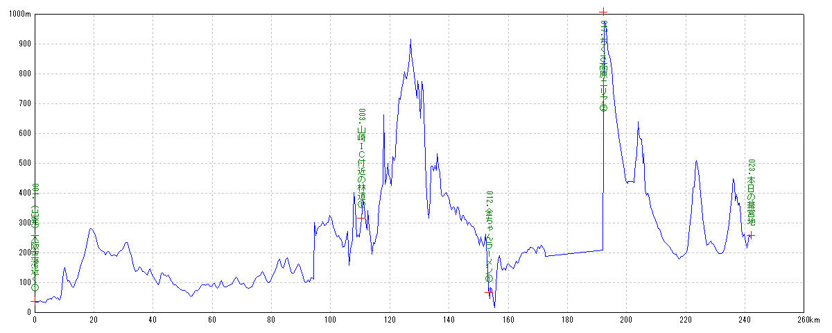 | 水平距離 | 242.14km | 沿面距離 | 247.76km |