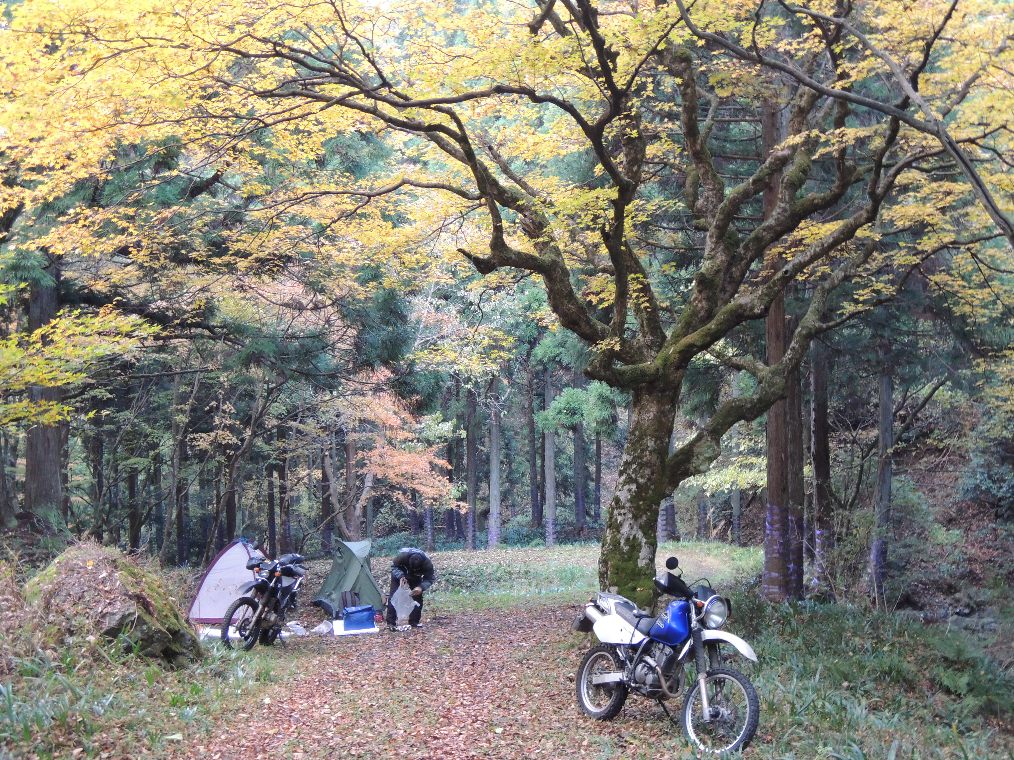 昨晩は、写真のように紅葉が進んだ木々の中に野営していました。(クリックで画像拡大)