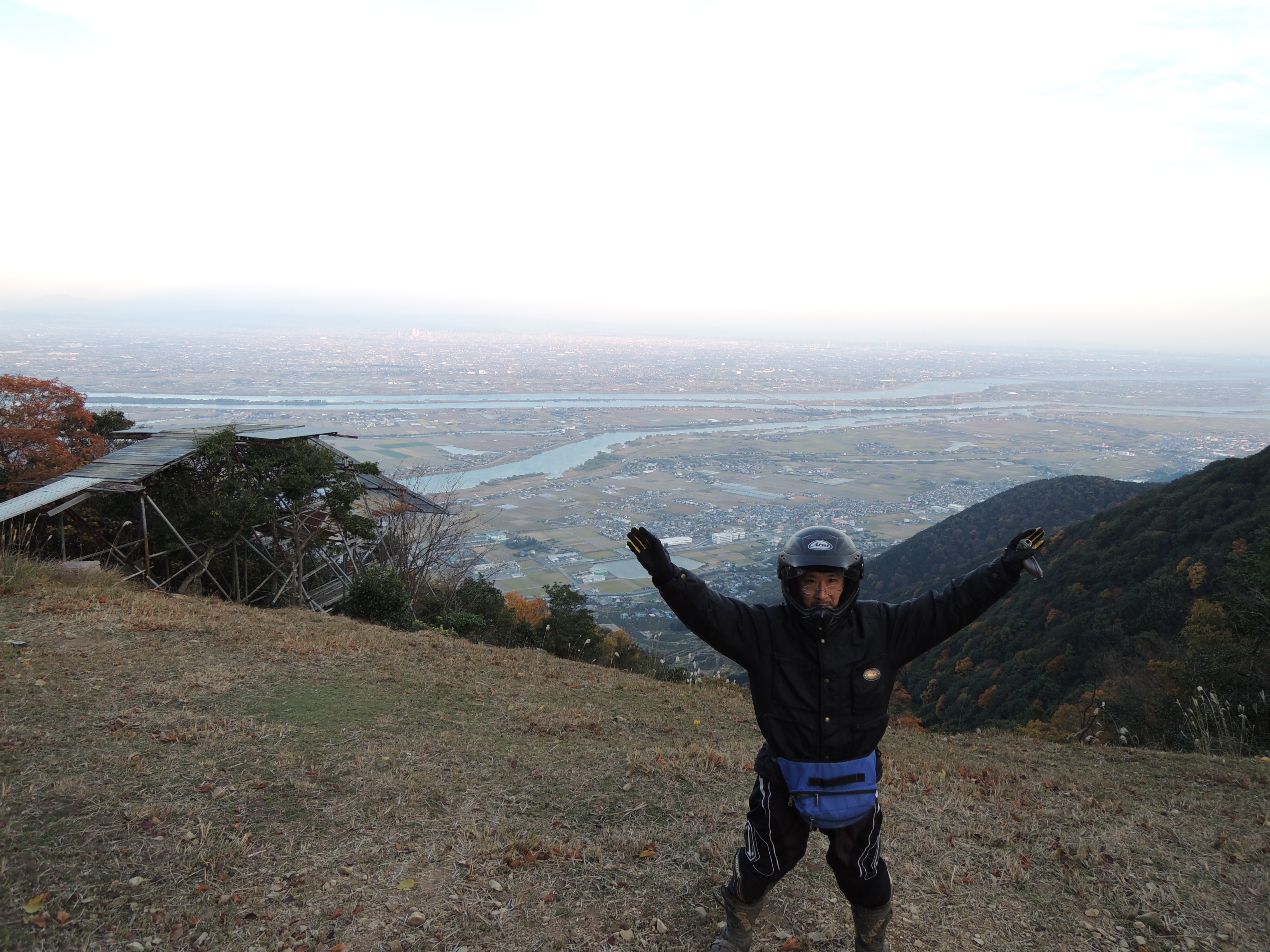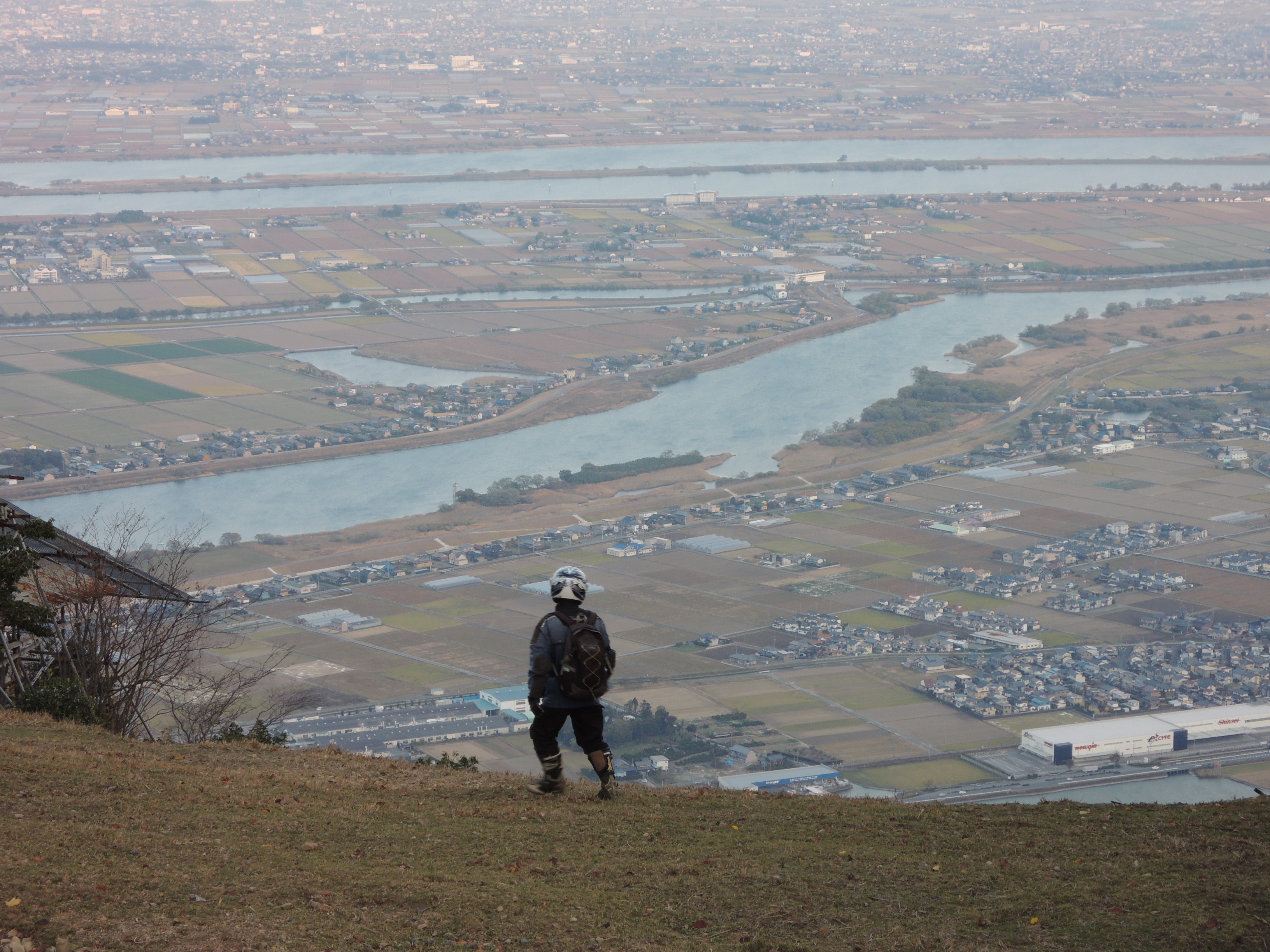 道中で、パラグライダーの出発台らしきものを発見、そこからは、木曽川/揖斐川/名古屋湾まで見通すことができてとても感動しました。これが写真です。絶景でした~!(クリックで画像拡大)