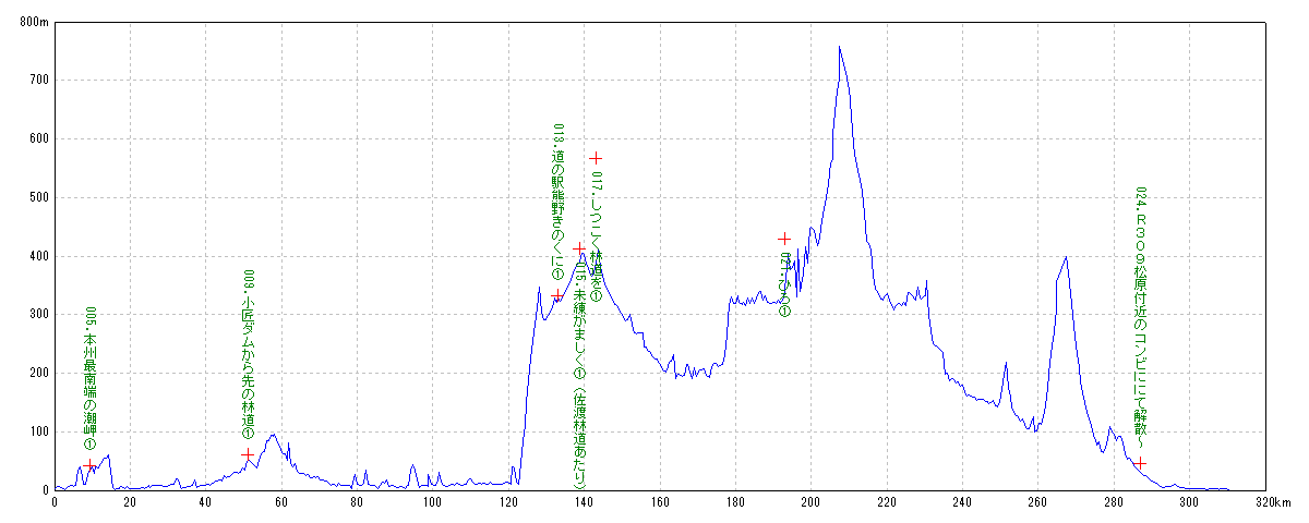 | 地点名 | 通過時刻 移動時間 | 積算距離 区間距離 | 平均速度 | 標高 獲得標高 | 平均勾配 |