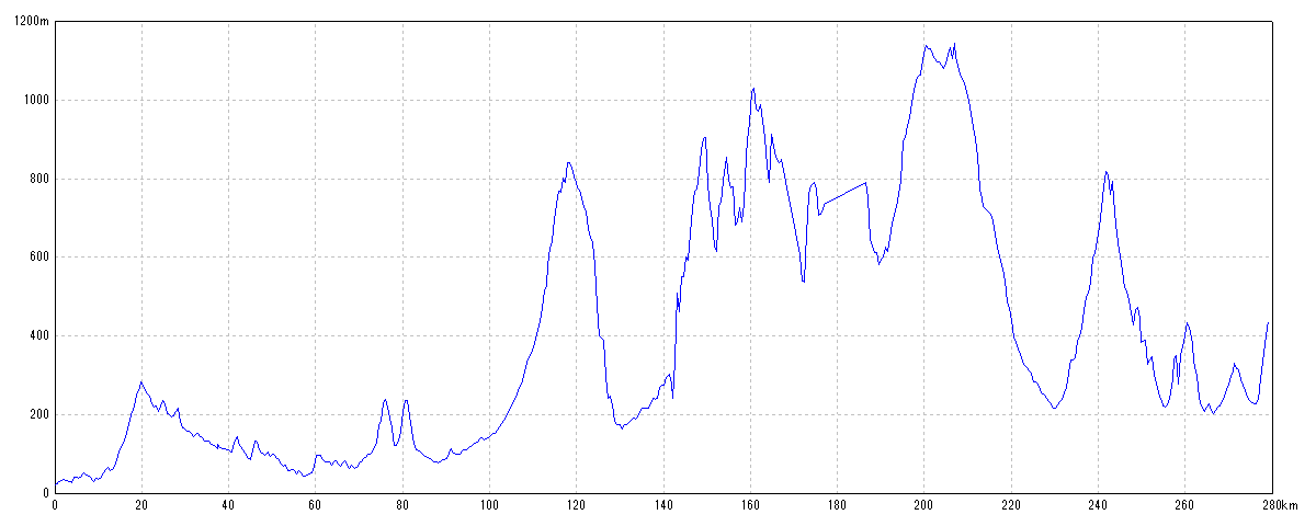| 水平距離 | 279.13km | 沿面距離 | 285.22km |