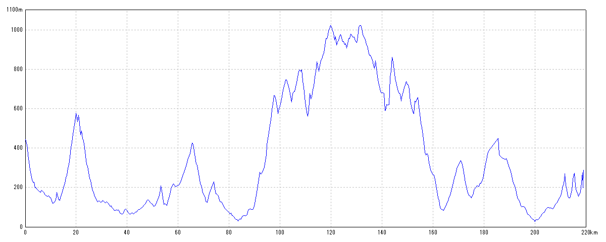 | 水平距離 | 219.13km | 沿面距離 | 221.94km |