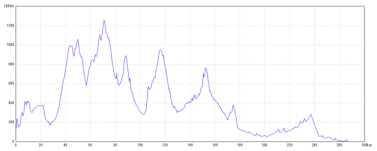 | 水平距離 | 266.12km | 沿面距離 | 268.54km |