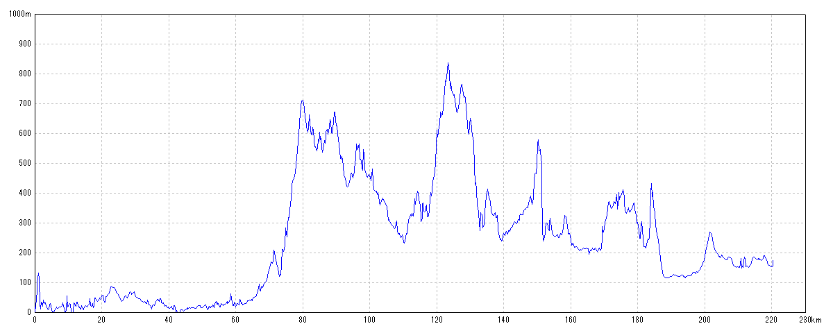 | 水平距離 | 220.39km | 沿面距離 | 225.55km |