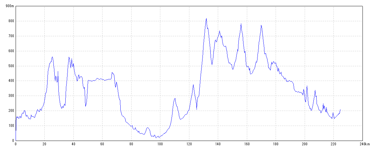 | 水平距離 | 224.71km | 沿面距離 | 231.15km |