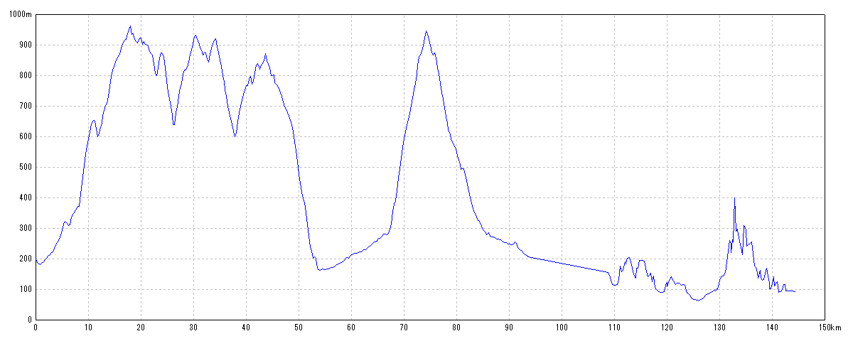 | 水平距離 | 144.52km | 沿面距離 | 145.58km |