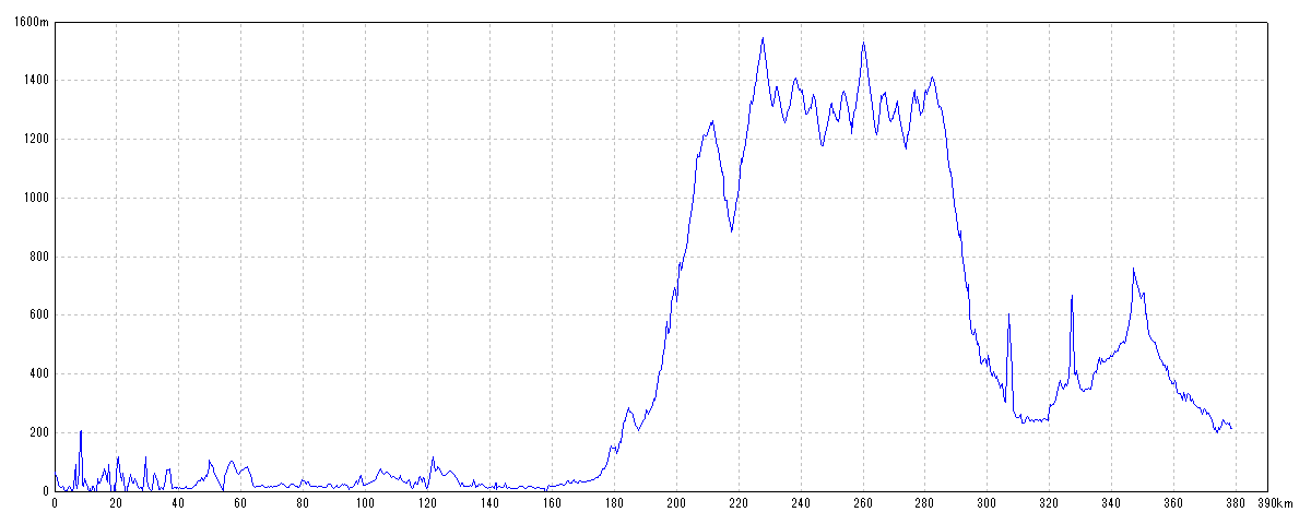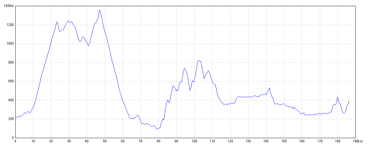 | 水平距離 | 186.15km | 沿面距離 | 186.77km |