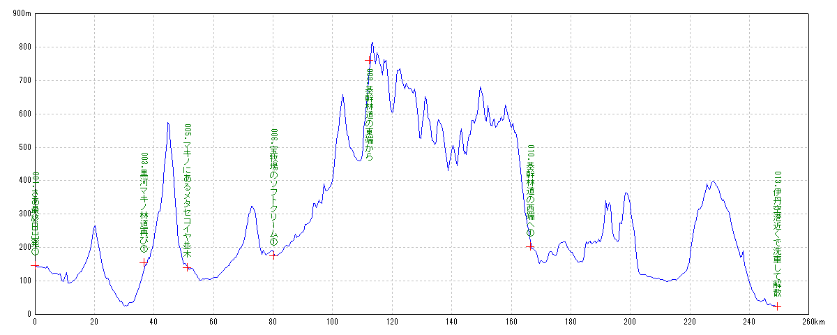 | 水平距離 | 249.50km | 沿面距離 | 250.66km |