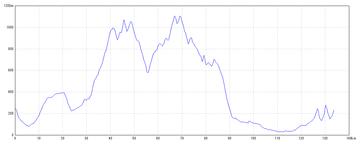 | 水平距離 | 133.69km | 沿面距離 | 134.24km |