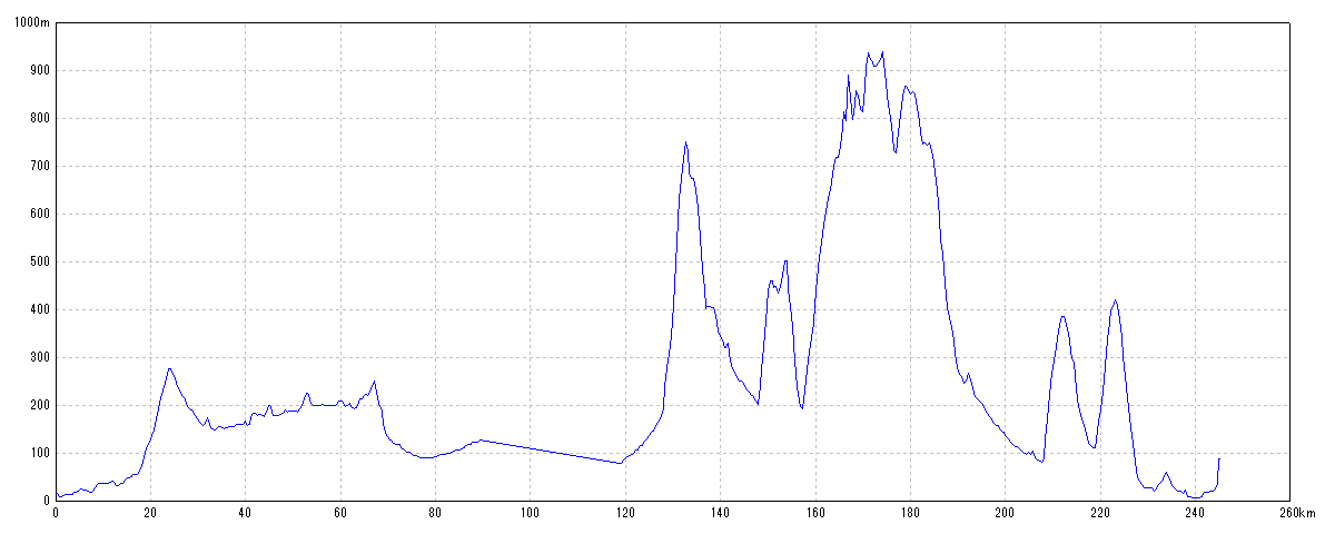 | 水平距離 | 245.27km | 沿面距離 | 246.32km |