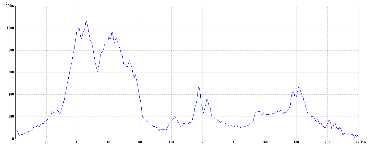 | 水平距離 | 219.66km | 沿面距離 | 220.22km |
