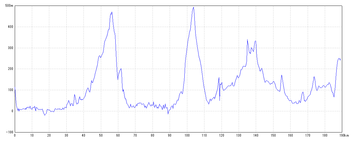 | 水平距離 | 188.88km | 沿面距離 | 189.62km |