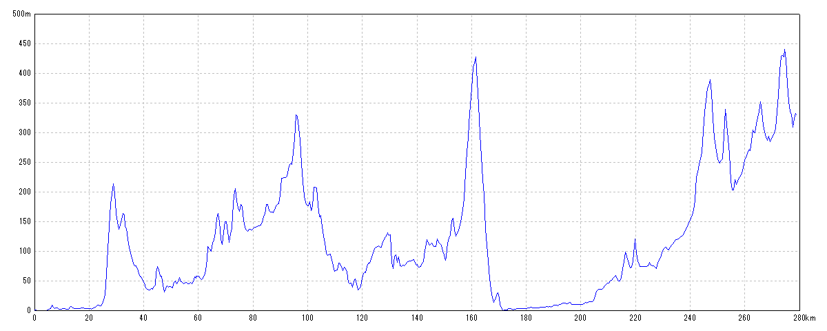 | 水平距離 | 278.88km | 沿面距離 | 279.43km |