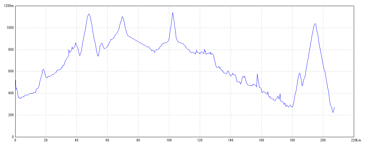 | 水平距離 | 207.51km | 沿面距離 | 208.83km |