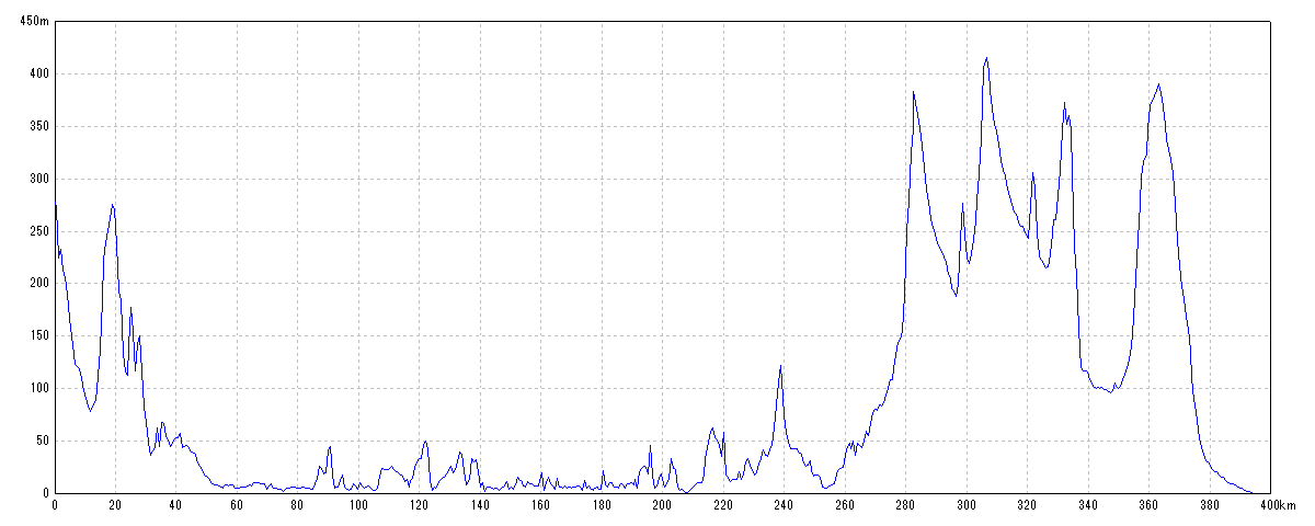 | 水平距離 | 393.96km | 沿面距離 | 394.87km |