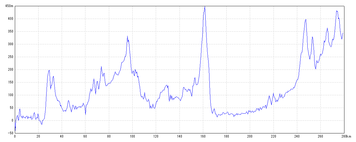 | 水平距離 | 278.93km | 沿面距離 | 279.51km |