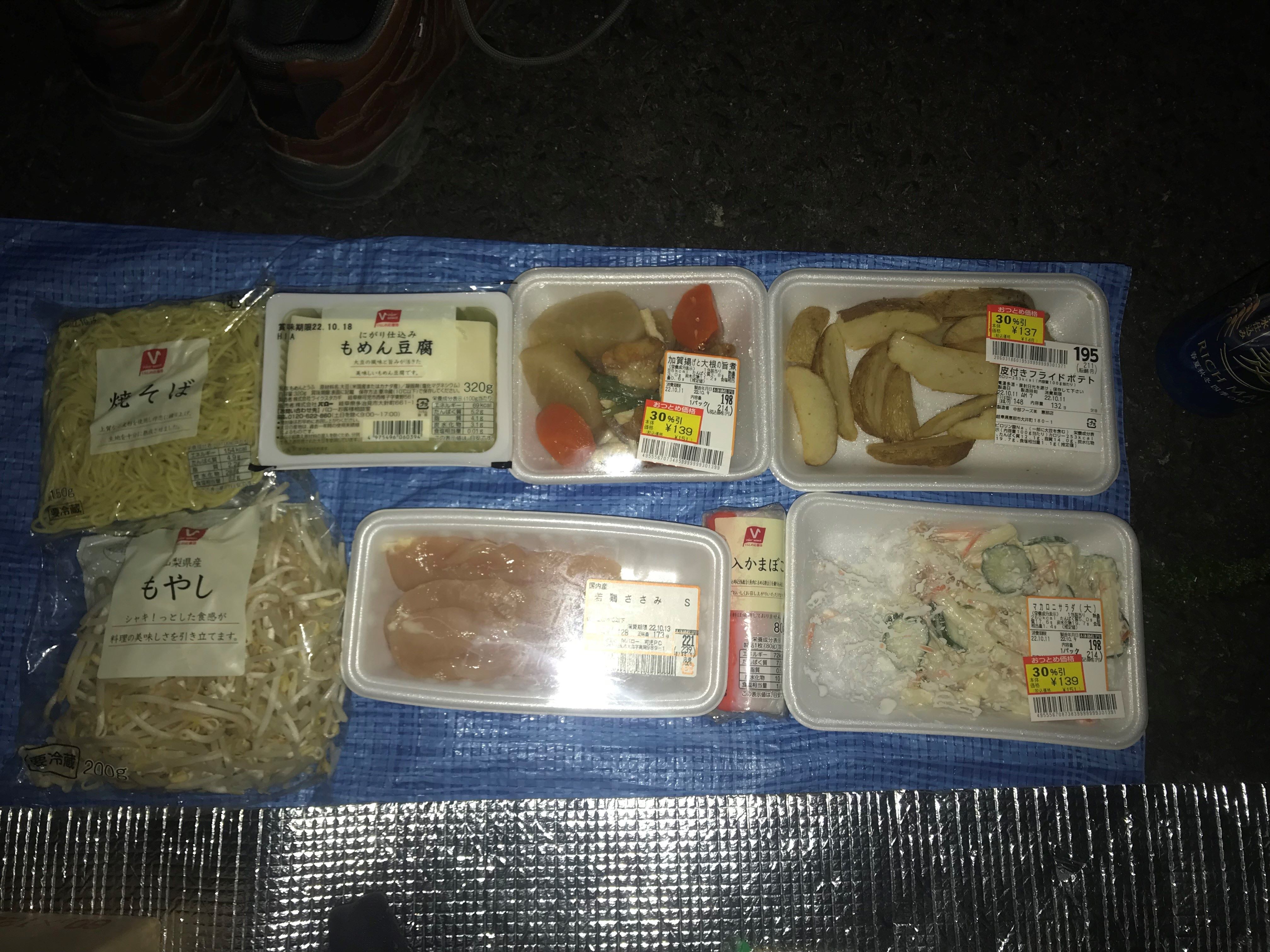 風呂に入った後は、食材と酒を買い込んで野営地に戻る。すでに暗くなっていました。