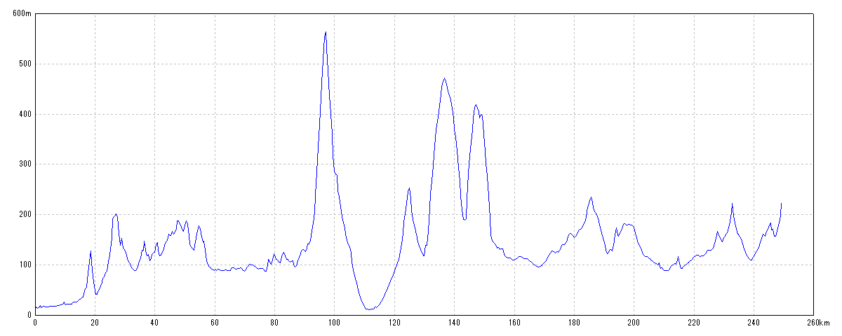 | 水平距離 | 249.03km | 沿面距離 | 249.39km |