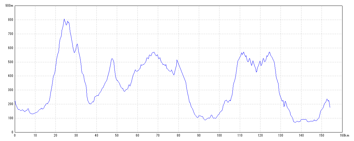 | 水平距離 | 153.96km | 沿面距離 | 154.50km |