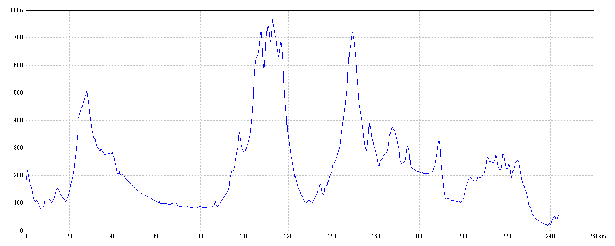 | 水平距離 | 243.59km | 沿面距離 | 244.01km |