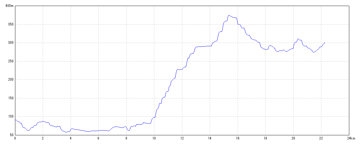 | 水平距離 | 22.25km | 沿面距離 | 22.36km |
