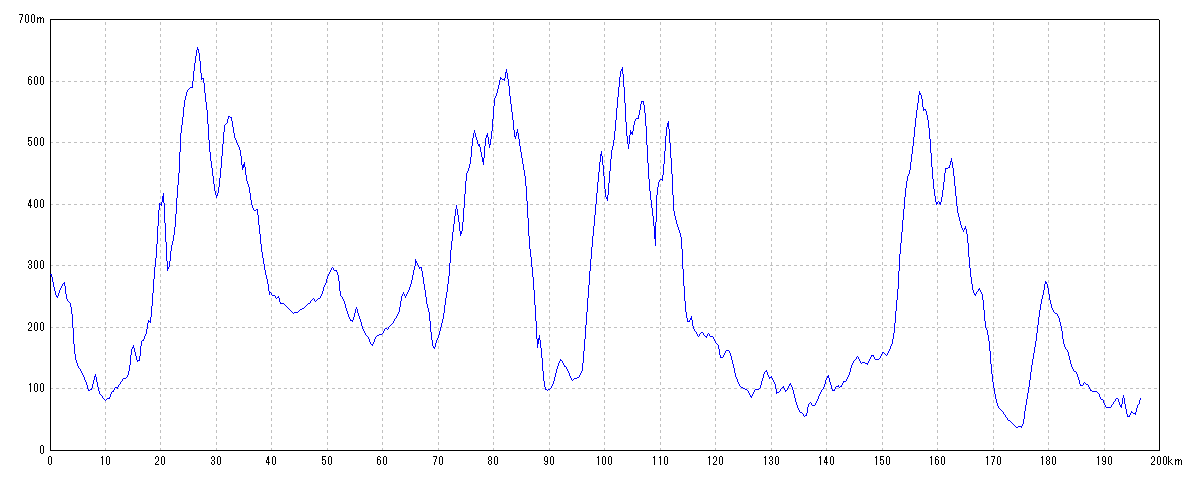 | 地点名 | 通過時刻 移動時間 | 積算距離 区間距離 | 平均速度 | 標高 獲得標高 | 平均勾配 |