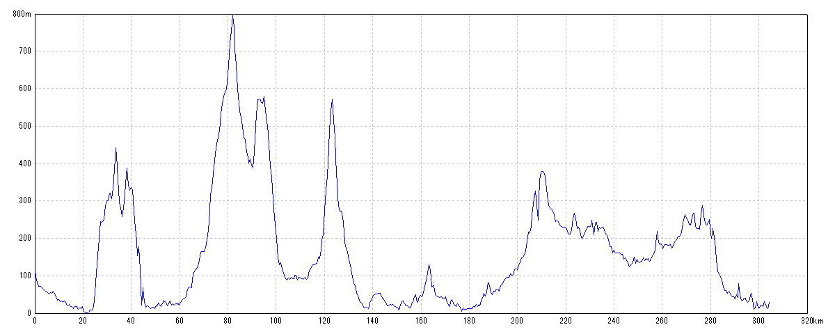 | 水平距離 | 304.33km | 沿面距離 | 305.15km |