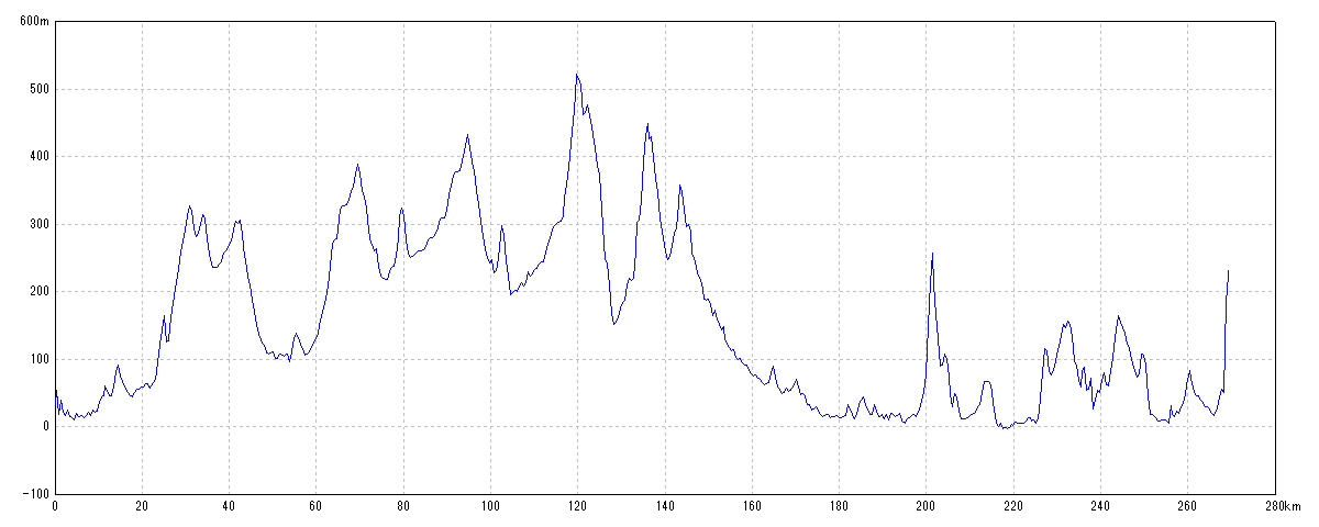 | 水平距離 | 269.30km | 沿面距離 | 270.07km |