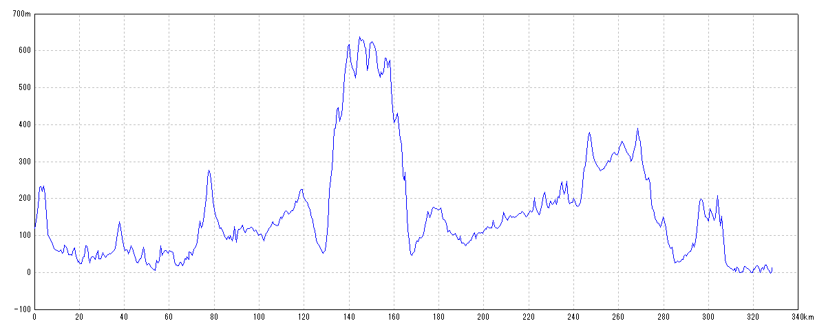 | 水平距離 | 328.26km | 沿面距離 | 329.16km |