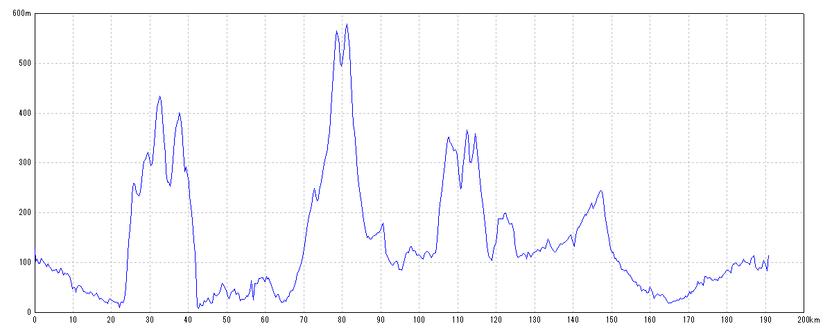 | 水平距離 | 190.64km | 沿面距離 | 191.21km |