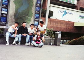 スカイバレーを経由して米沢へ。更に北上して今夜の宿の蔵王に到着。17:30。大露天風呂があると言うことで400円払ってレッツゴー。強酸性の白濁したお湯。泥と汗を落として、さあ後は宿だ。幸いスキーシーズンのみの駐車場ががら空き。アスファルトのうえという大変上品な環境をGET出来ました。 ビール、焼酎これでも足らず。やむなく酔っぱらい運転でもう1本焼酎。宴は大いに盛り上がり周りは誰もいないせいもあって大騒ぎ。深酒のせいかバタンキュー。おやすみ。 <<次の日からは日記無し。記憶をたどって書きましょう。>> 94/08/12(3日目) 翌朝、8時頃に出発。仙台→平泉の中尊寺まで延々と走り、「金色堂を見ましょうや」ってことで、中尊寺巡り。ちょうどお昼と言うことで飯を食べて、その後、コータ君とセイジ君は東京の実家へ戻るとのことでここでお別れとなりました。 さて松ちゃんはそのまま田沢湖、八幡平などと一通りの観光をしてその辺の河原にて宿を取りました。一人はやっぱりすることがない。ビール飲んでラジオを聴いているうちに寝てしまいました。 94/08/13(4日目) いつものように朝起きておもむろに出発。今日は青森間で頑張って行きたいなぁ。一生懸命走ってやっとたどり着いた十和田湖。ちょっと休憩をはさんで、排ガスまみれ、ヒゲぼうぼうの出で立ちで、「すみません、写真撮って下さい」「(ぎょっとした顔つきで、、)は、はい」ということで、乙女の像の前でとってもらいました。 この後奥入瀬に行きたかったのですが、バスで渋滞しているようなので、やむなく鰺ヶ沢方面(舞の海のふるさとだよ)へとエスケープ。県道らしき道をひたすら走る羽目になりました。周りは何もなく単調ままならない道。眠い眠い。「お!久々の海だ」日本海が見えたときはほっとしました。本当は津軽半島の先端まで行きたかったのですが、時間的に無理と判断して、やむなく南下。日本海沿岸をただただ走りました。