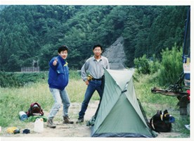 さて、予定のルートである淡路島の林道(柏原林道)を探すのですが、迷いに迷って行ってみれば舗装路。がっくりしながらもまあ次があるさばかりに本四高速へ。この時点で時計は11:30.なんたることでしょう。四国に入ったときは丁度12:00でした。今日は移動日なので、比較的単調に走る。地道をダラダラと(R11→R194)移動して、本日の宿探し。適当な場所が無く、結局道路脇の工事車両をおくような広場。国道脇なんだけど、車はほとんど通らず、比較的静かな場所でした。夜の宴は程なく終了。明日からの本格林道初体験を夢見て床につきました。 94/09/24(2日目)