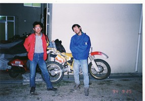 熱くのむ2人。延々と林道の良さを実感した話をしまくって床についてたのでした。明日はいよいよスーパー林道。94/09/25(3日目)