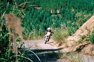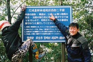 ガスチャージの後早速入り口を見つめていざ突入したのはいいのですが、案の定舗装路に変わっています。一部ダートは残るものの、林道に慣れきった我々の欲求を満たす程ではなく、淡々としかも黙々と走る事になりました。途中松ちゃんの「林道を走っている姿を撮りましょうや」等との要望をすかさず取り入れてくれたコータ君が休憩を挟むなどしてくれ、晴れた空の下、ナチュラルツーリングしてしまったのでした。