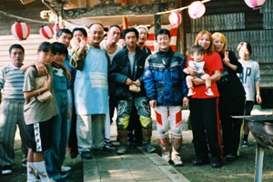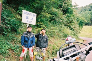 「兄ちゃんたち、ちょっと食べて行きなさい!」とのおばちゃんの声。どうやら”秋祭り”ということで、みんなで飲めや唄えやの、大盤振る舞いをしていたそうな。缶コーヒーとホルモン焼き、おやきを頂いた2人は、「どこから来たの?」「いや~ずいぶんと田舎に来てくれたもんだ!」「彼は○○君(忘れた)に似ているよ~」という周りのみなさんの質問に対応してしばしの時間を過ごす。 「この道を右に曲がったら砂利道があるから、オフロードバイクならいけるんでないかい?」というおじさんの一言でルートを決定。丁重にお礼の挨拶をしてお別れしたのでした。